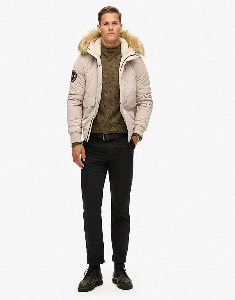 - Detachable faux-fur trim